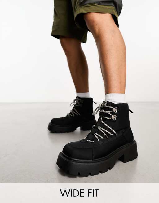 Truffle Collection Wide Fit chunky hiker boots with bungee cord detail in black ASOS Very well made.