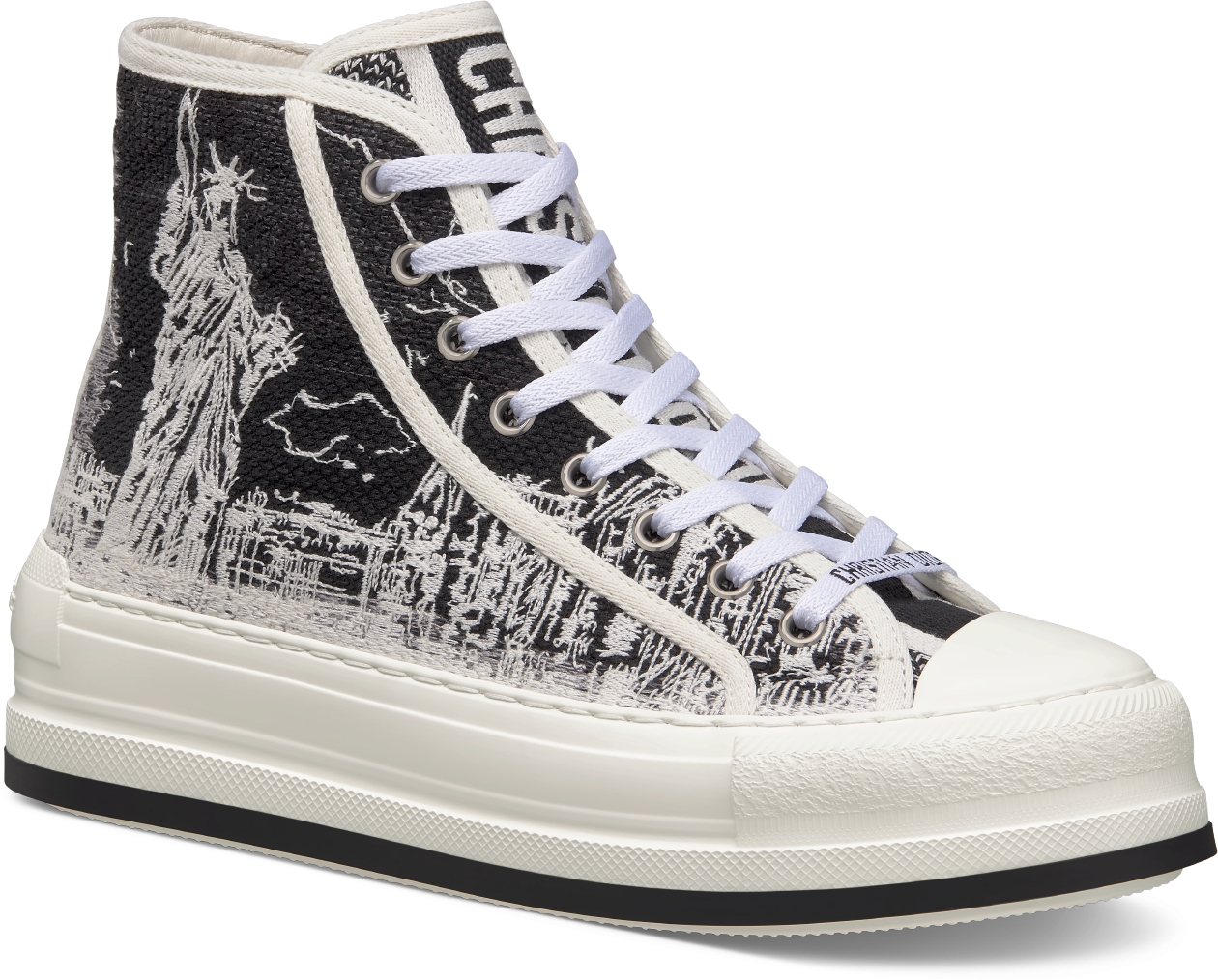 DIOR Walk N Dior High Top Platform Sneaker Cotton Embroidered With Black And White New York Motif Size 37 Women Very well made.
