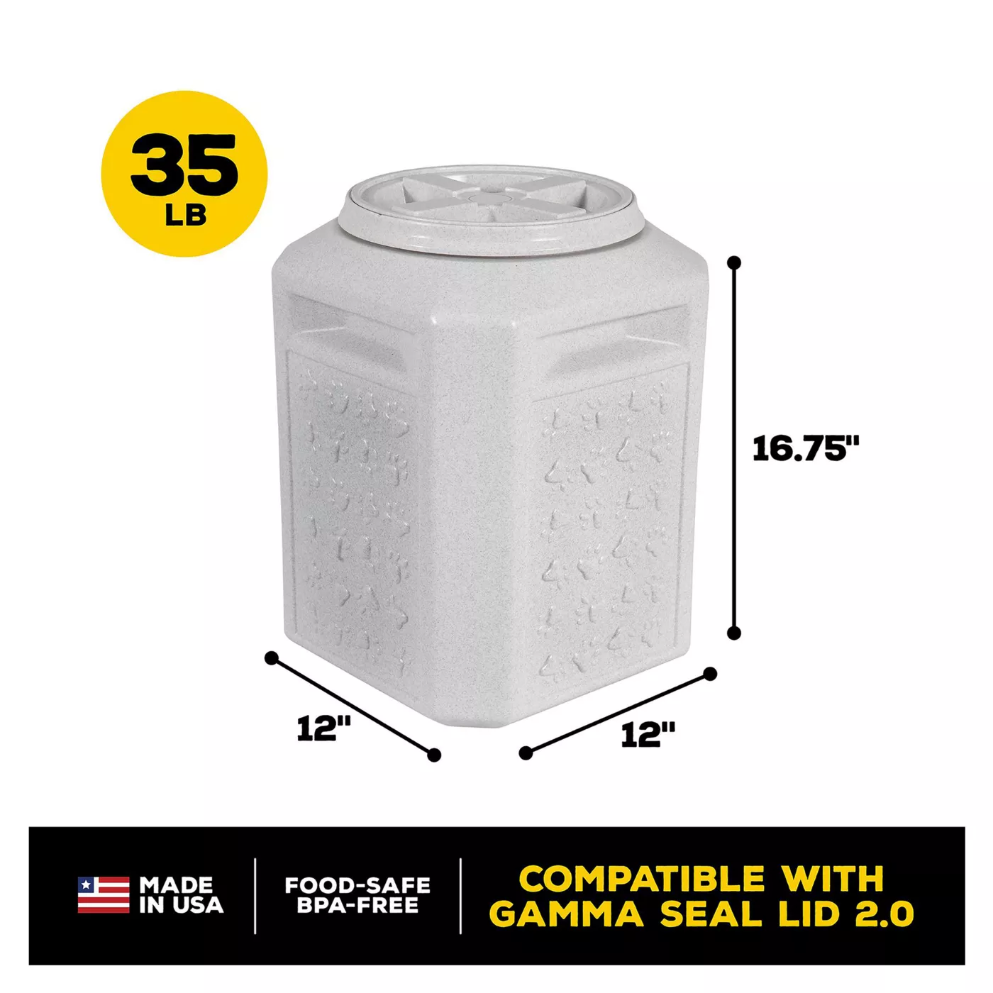 Gamma2 Vittles Vault Dog Food Storage Container Durable Food Safe BPA Free Storage Made in The USA with Recycled Materials Holds up to 35 pounds Very well made.