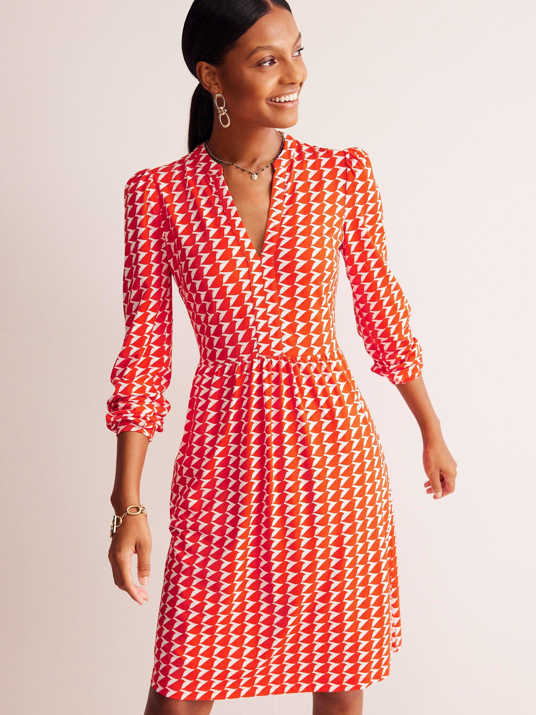 Boden Naomi Geometric Dress Blaze Orange Very well made.