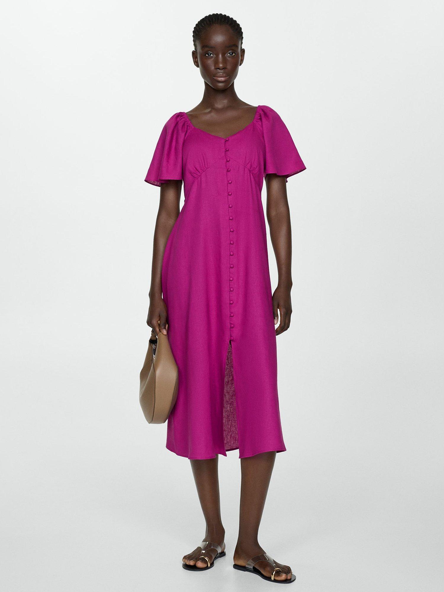 Mango Buttoned Linen Blend Midi Dress Very well made.