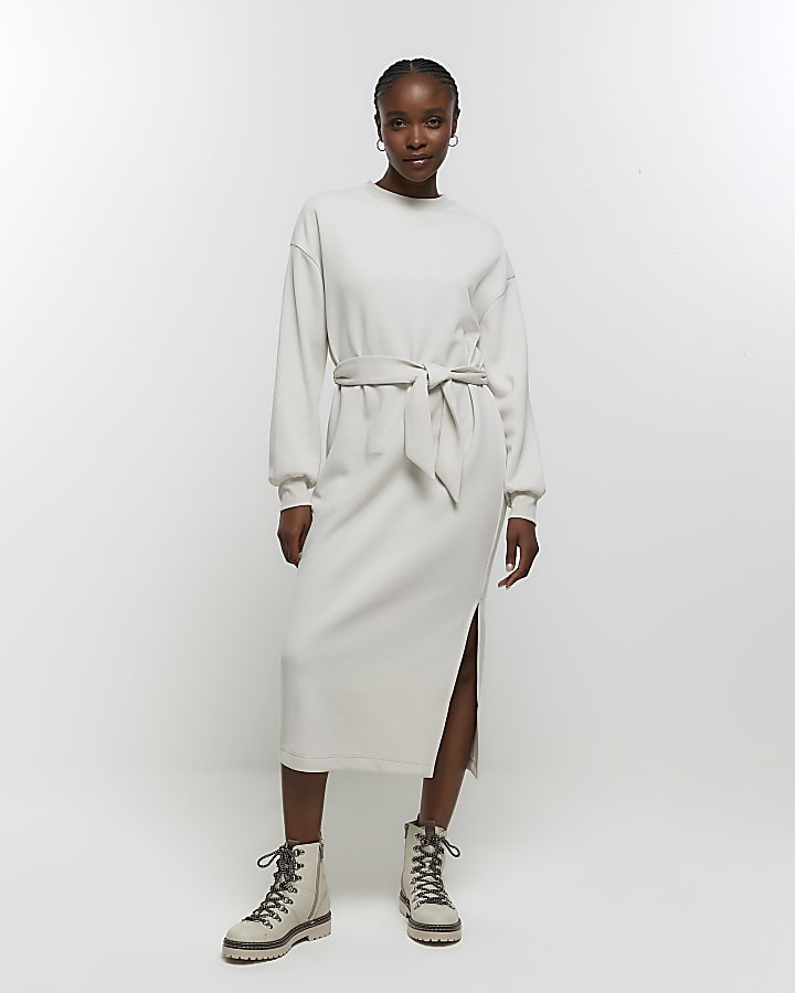 Cream tie jersey sweatshirt midi dress River Island Very well made.