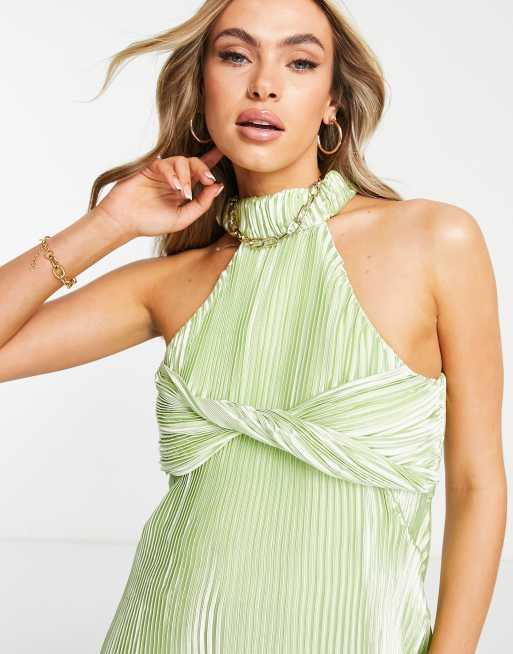 Missguided plisse midaxi dress with bust overlay in light green Very well made.