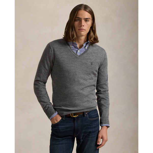 Men s Grey V Neck Sweaters Ralph Lauren Very well made.