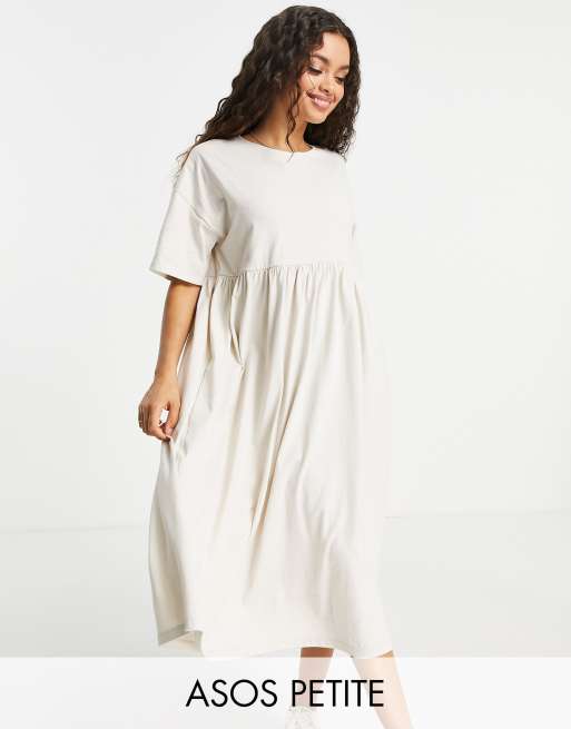 ASOS DESIGN Petite oversized midi smock dress in stone Very well made.