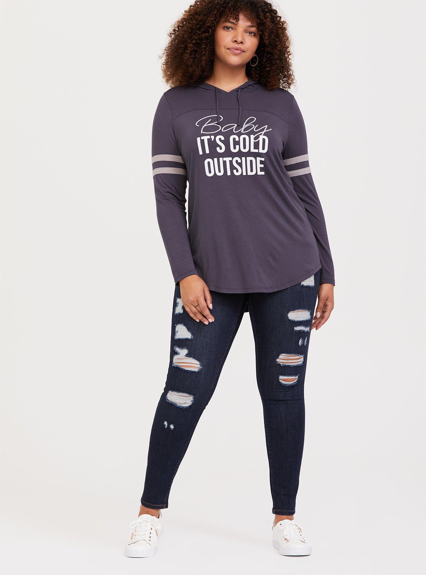 Plus Size Super Soft Baby It s Cold Outside Dark Grey Football Hoodie Torrid Very well made.