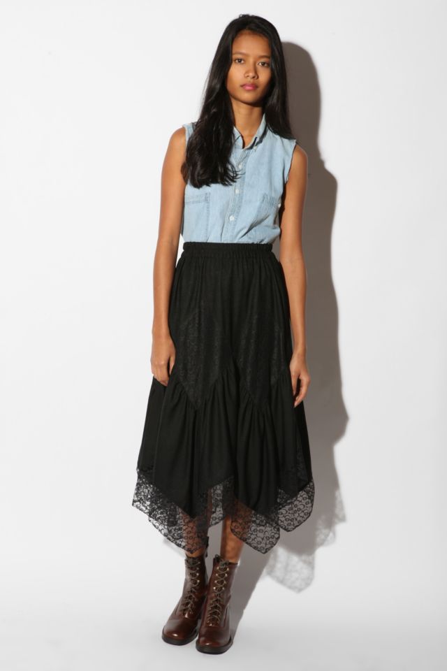 Vintage 80s Lace Blocked Maxi Skirt Urban Outfitters Canada Very well made.